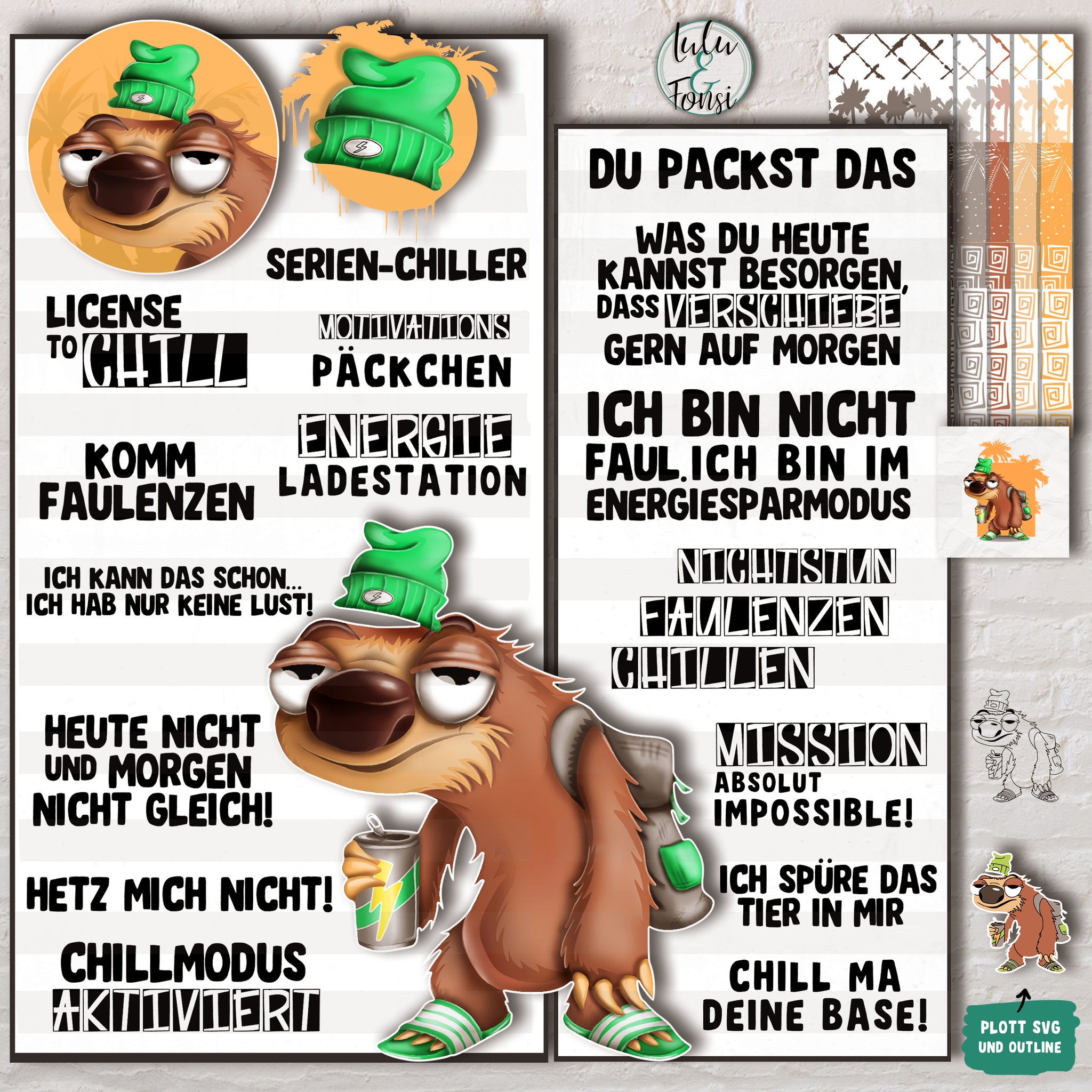Digiset Faultier, Digistamp Chillen, Digiset Entspannung, Digiset Faul